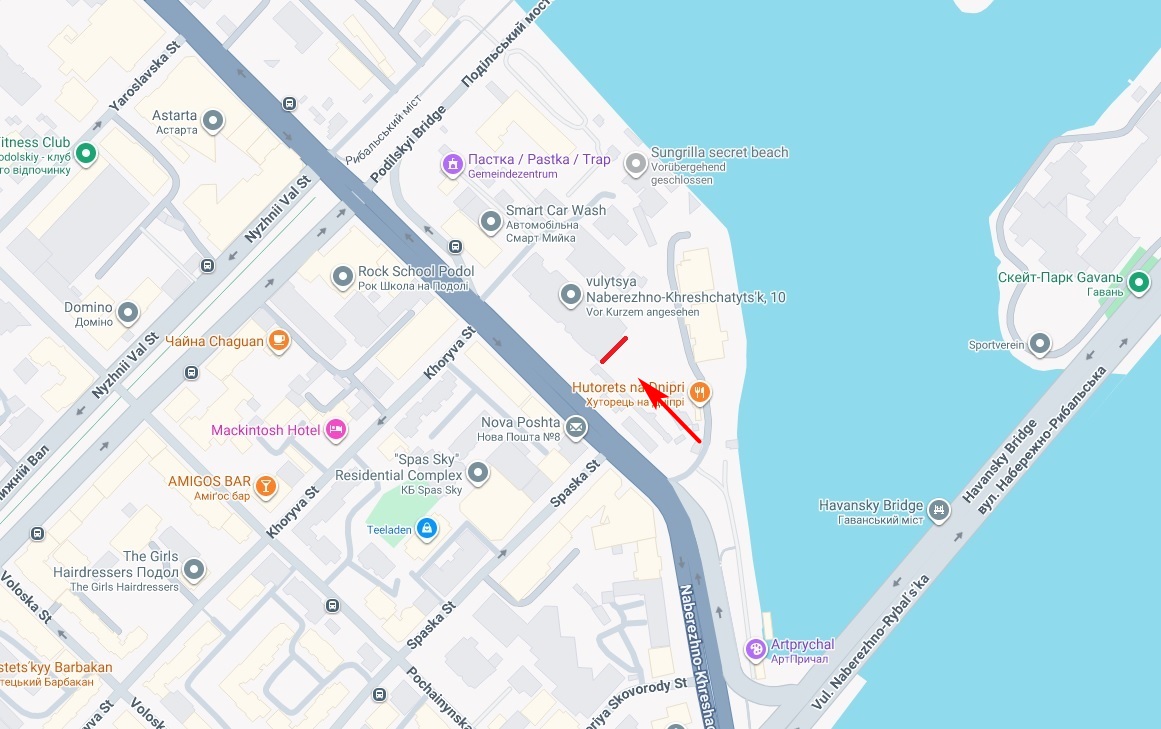 Набережно-Хрещатицька вул., 10 (з боку Гаванського моста) (тільки букви) — К16